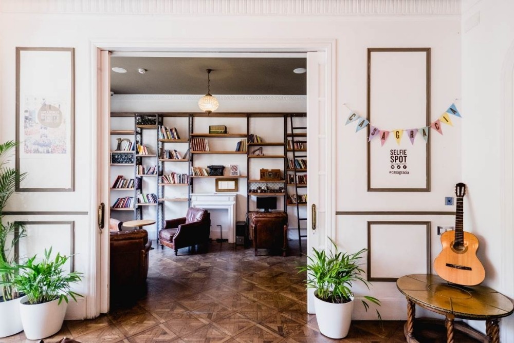 打造成舒適溫馨的家庭風格的巴塞隆納卡薩格拉西奧旅館,當你走進來就能夠感受到你正回到家,而不是進入旅宿。在閱讀區的一角,帶有大型拱形窗戶的窗戶,迷人的花園露台,並且提供當地醃製肉類和起士的道地西班牙早餐;其它設施還有雞尾酒酒吧、瑜珈,甚至有公共吉他可供使用。巴塞隆納卡薩格拉西奧旅館提供套房、單人房、宿舍和豪華公寓等房型,全部包括日常清潔,毛巾,床單和免費WiFi,不論是設備或是服務,皆媲美在飯店的享受。