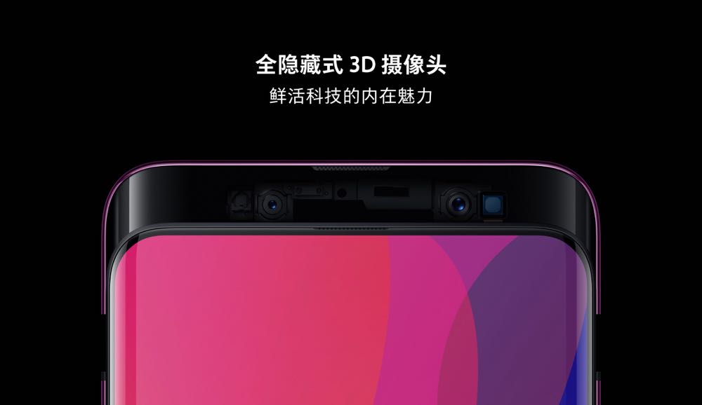 Find X 最大的特色當然就是那個升降式的鏡頭。使用者只要開啟相機功能就會自動將 Find X 頂部和左右各一小段中框頂起出現鏡頭,前後鏡頭與 IR 補光燈、IR 鏡頭、近距離傳感器、聽筒、前置鏡頭、點陣投影器等元件也通通就這樣藏在那小小的方框之中!
