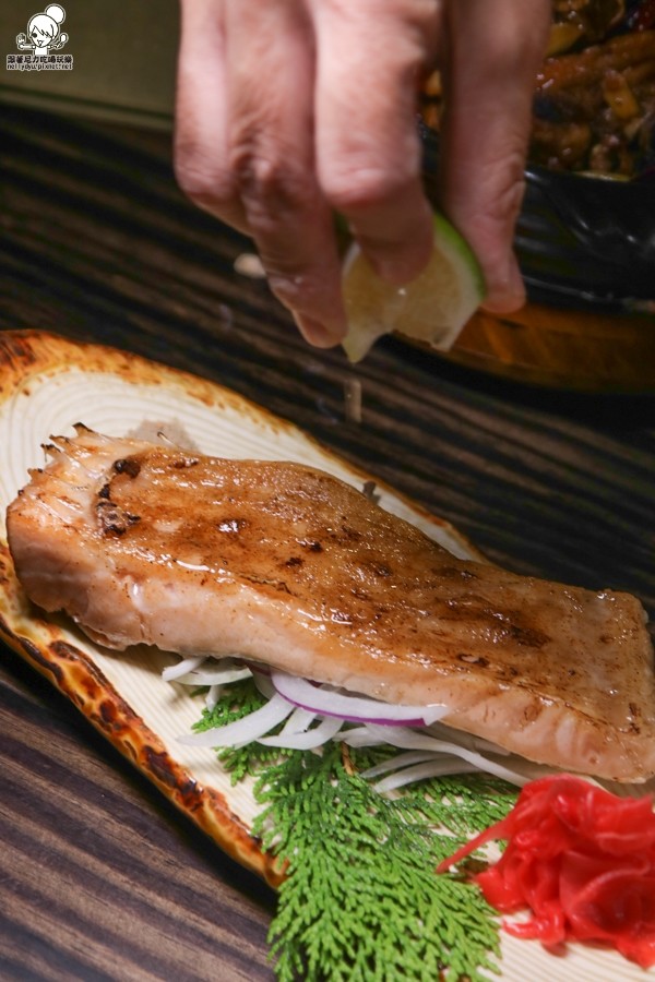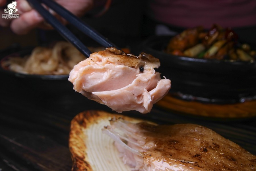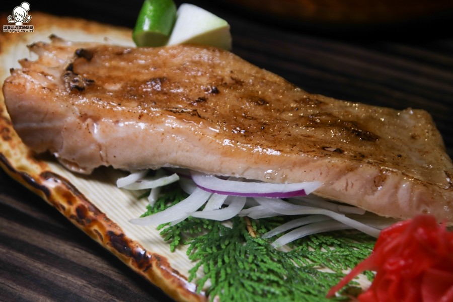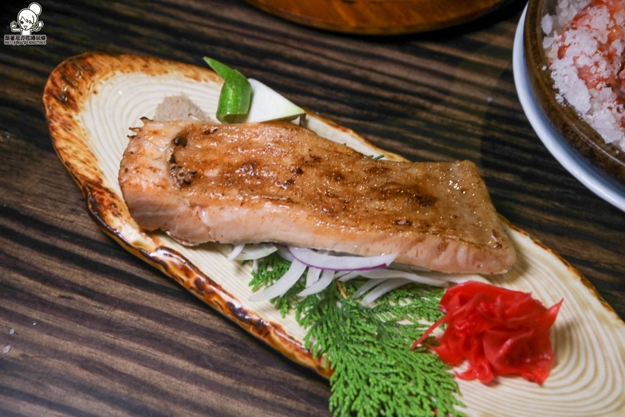 帶有厚度與豐富油花的鮭魚肚,使用鹽烤的方式帶出油脂與香氣