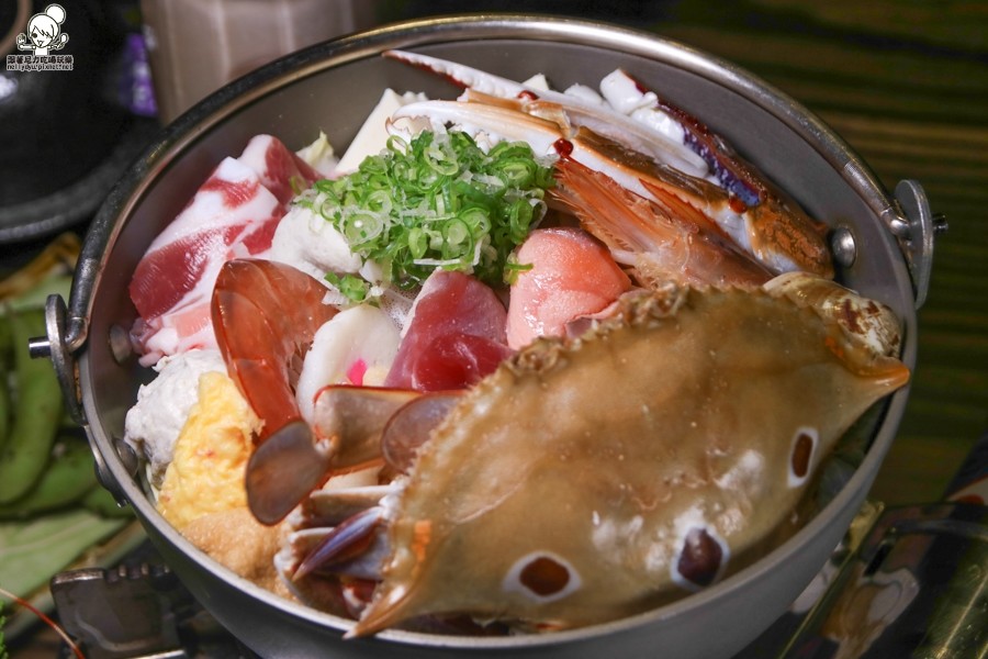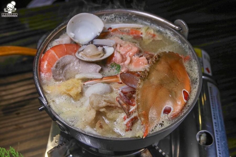 有螃蟹、蝦子、鮪魚、蛤蠣、豆腐、肉片、香菇貢丸、火鍋料等澎派好料,底下還有滿滿的白菜