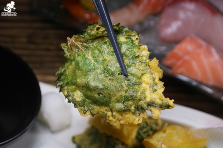 第一次吃到用紫蘇製作成的天婦羅,用新鮮紫蘇包入了魚漿、蝦將、魚肉