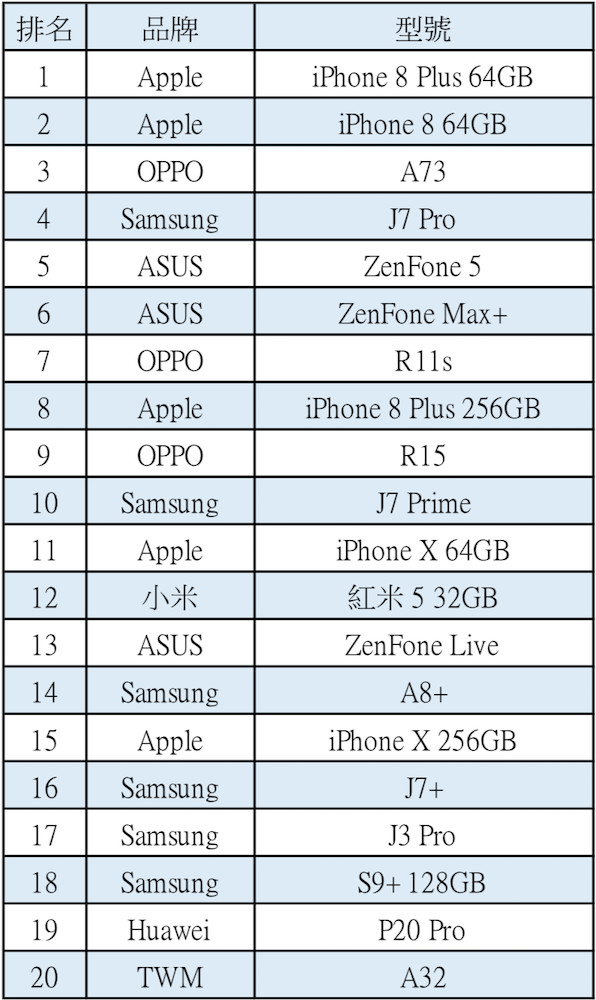 五月份的手機銷售冠、亞軍,與上個月 (四月份) 一樣,同樣是由 Apple 的 iPhone 8 Plus 64GB 與 8 64GB 蟬聯寶座,從這樣的現象可以看到,消費者在有足夠預算下,首選 iPhone 的可能性還是較高, 雖然夜拍是 iPhone 一大罩門,但除此之外,在系統的穩定度、周邊配件與 App 的豐富性,甚至未來汰舊換新時的保值性,仍是 TOP20 中最高,除非 Android 陣營推出可以一次撂倒 iPhone 的產品,不然 iPhone 拿下冠、亞軍的狀況可能會持續下去。