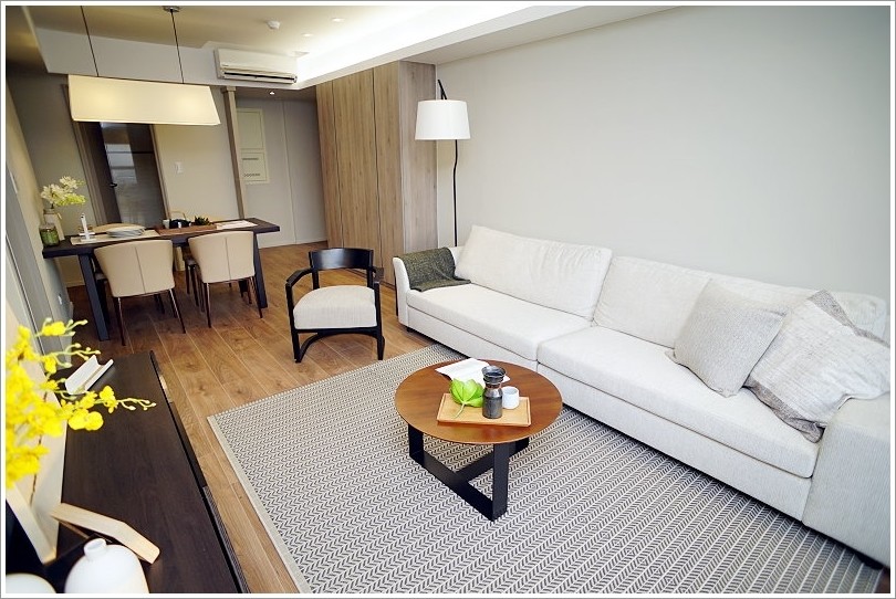 ▼像這種餐廳與客廳連在一起的房型,是現在很常見的室內設計,後方連著三個房間門與大門,開放式的空間加上進出多次,總會讓室內溫度不穩定,這也是選購冷氣時所要考量到的重點!