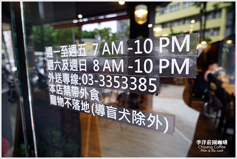 ▼「季洋莊園咖啡」桃園市府店就位於桃園縣府路、信一街交叉路口,大大的黑色扛棒還算是顯眼好找!附近有路邊車格及停車場,門口也有機車格可供停放,交通頗為方便!