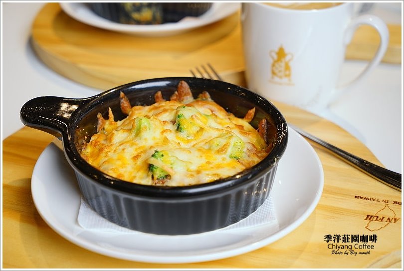 ▼沒多久餐點上桌囉~我們點了一些咖啡、焗烤與甜點一同分享,一次就能享受到鹹甜交錯的不同味蕾!上頭有拉花的是玫瑰拿鐵,喝起來不僅有香醇的咖啡香氣,搭配滑順乳香、馥郁馨香的玫瑰香氣適時點綴其中,口感香甜溫醇,味道調和的相當平衡,算是滿耐喝的一款!