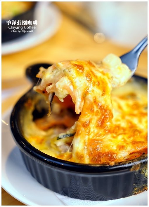 ▼輕輕一拉,濃厚的起司搭配焦香的口感,更增添不少香氣!裡頭的配料還不少,有雞肉、菇類、鮮蔬與千層麵,帶有濃郁奶香,口感溫潤和諧、香氣十足,吃起來頗有飽足感!