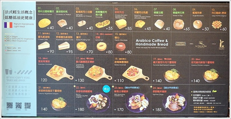 ▼菜單,這裡除了提供咖啡、飲品之外也有不少輕食、甜點,採用的是法式輕生活概念,針對現代人需求強調低糖低油,更能減少身體的負擔!