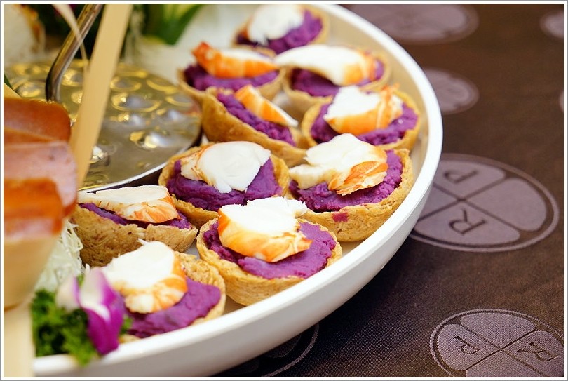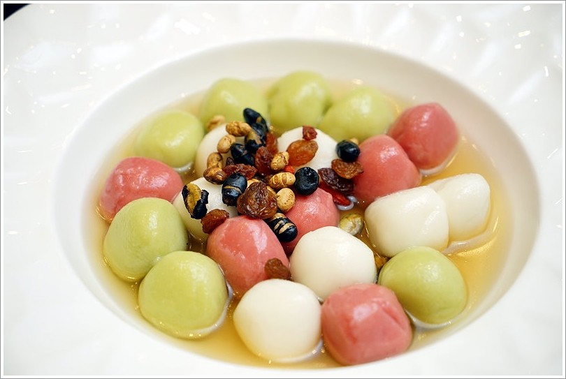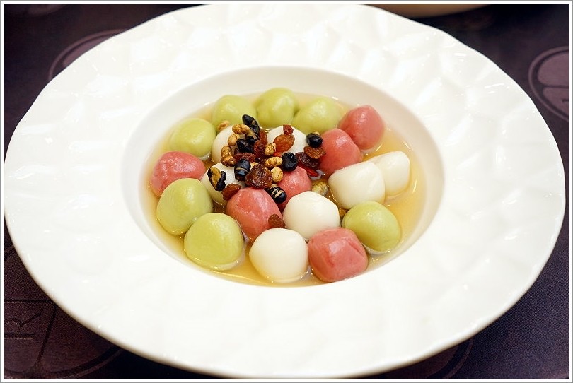 ▼接下來趕緊來看看菜色如何吧!不論是什麼價位,第一道都是金沙雙色慶團圓,也就是三色湯圓搭配堅果,跟一般炸湯圓感覺截然不同!