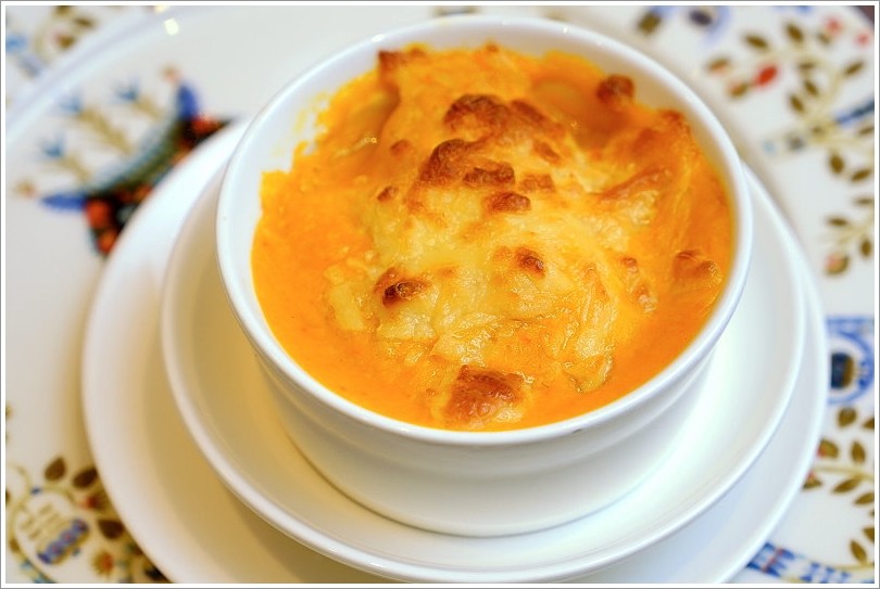 ▼金汁焗烤海鮮蔬(位上),採用南瓜搭配海鮮時蔬,上頭再加上起司焗烤,光看就讓人口水直流啊!