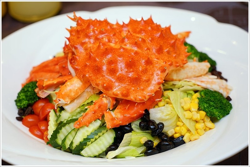 ▼現在看到龍蝦已經不稀奇了,直接整隻帝王蟹上桌更霸氣!下方襯有多種新鮮蔬果,感覺營養滿分啊!