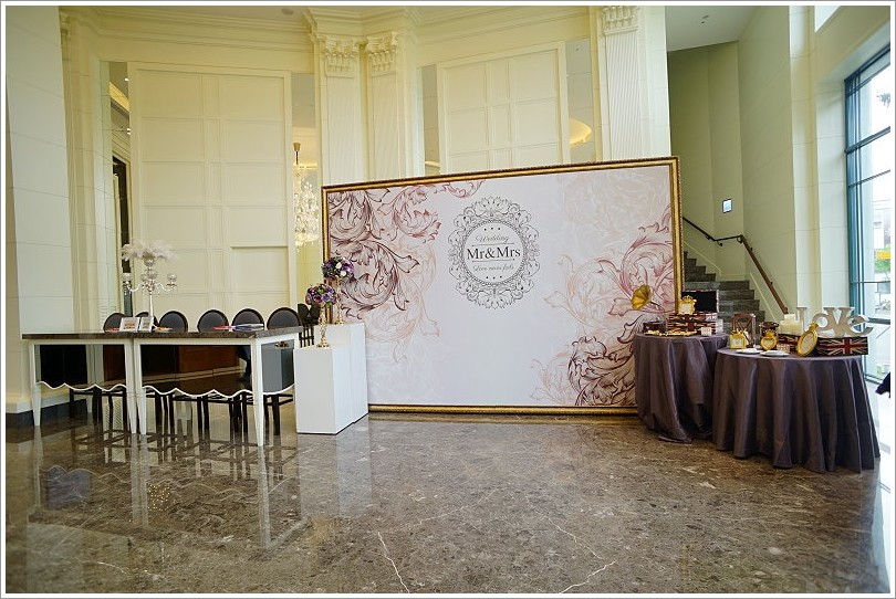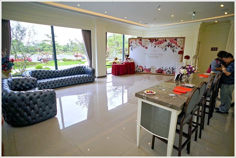 ▼一進來就有一個獨立的收禮桌與禮賓接待處,還有拍照背板與沙發座椅,同樣都是提供給宴會客人與新人使用!