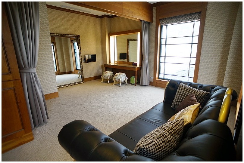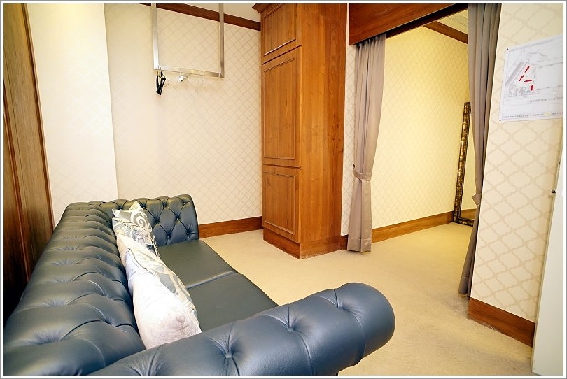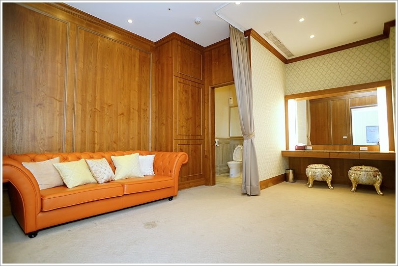 ▼一旁備有沙發與獨立的洗手間,方便新人上廁所!