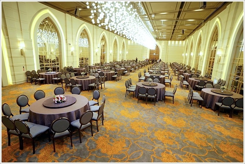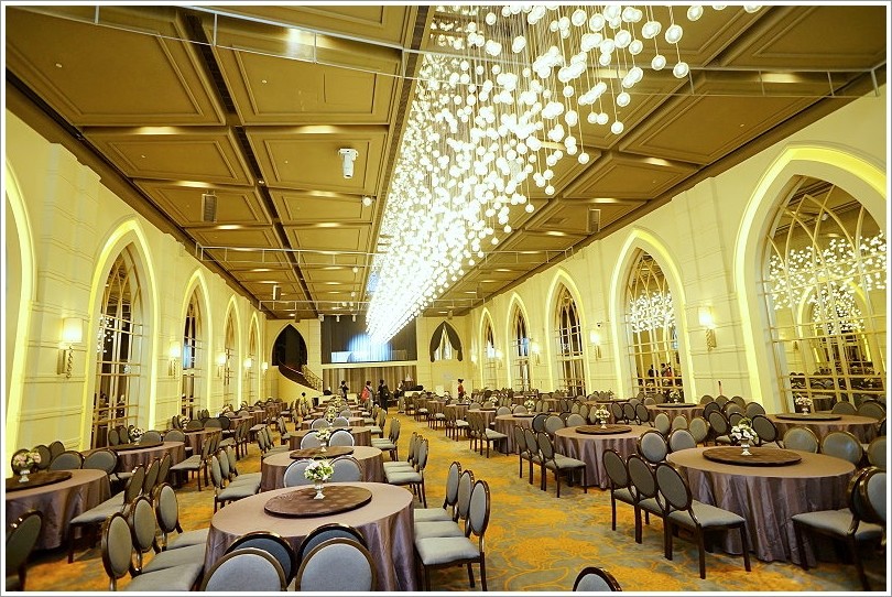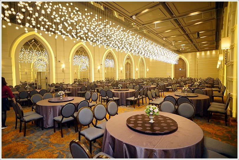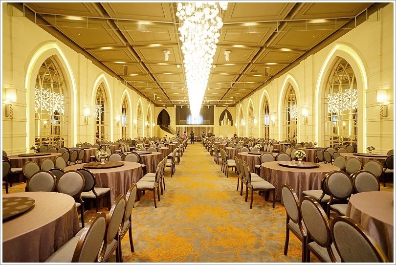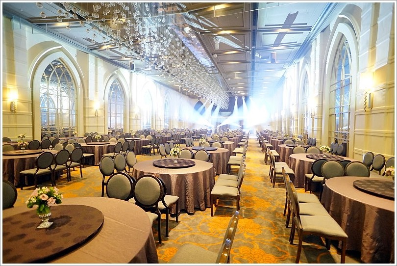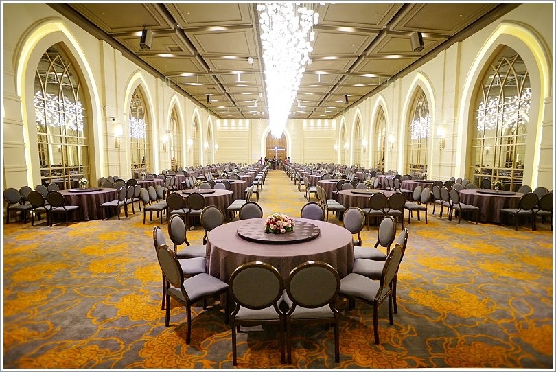 ▼宴會廳裡頭當然也是重點,維多利亞廳不僅是最大的一廳,而且可以容納最多至47桌,重點是全廳無柱子,真的是豪華又典雅!(最低保證桌數41桌、低消60萬)