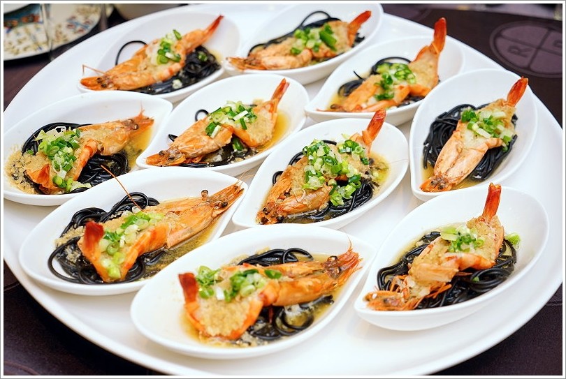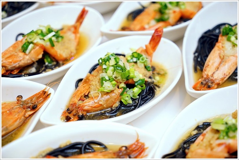 ▼養生蒜香龍虎蝦,下頭搭配的是墨魚麵,不僅更有創意而且鮮味滿滿,吃起來也非常棒!