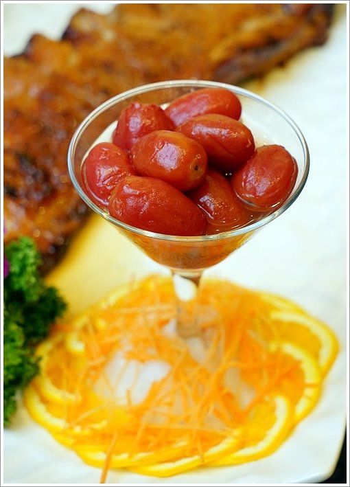 ▼一旁還有醃漬蜜番茄,帶點酸香甜美,提香又解膩!