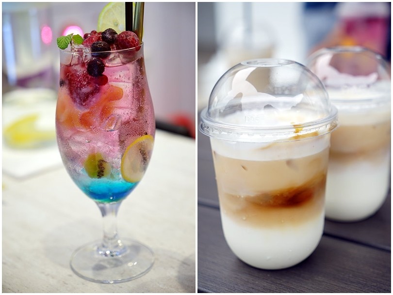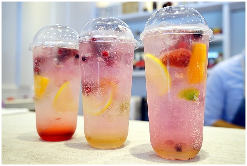▼漸層的氣泡飲不僅夢幻又華麗,裡頭還有採用新鮮的水果,喝起來清爽又暢快!
