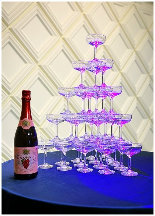 ▼香檳塔,夢幻又時尚,也是不少新人婚禮必備的橋段之一!