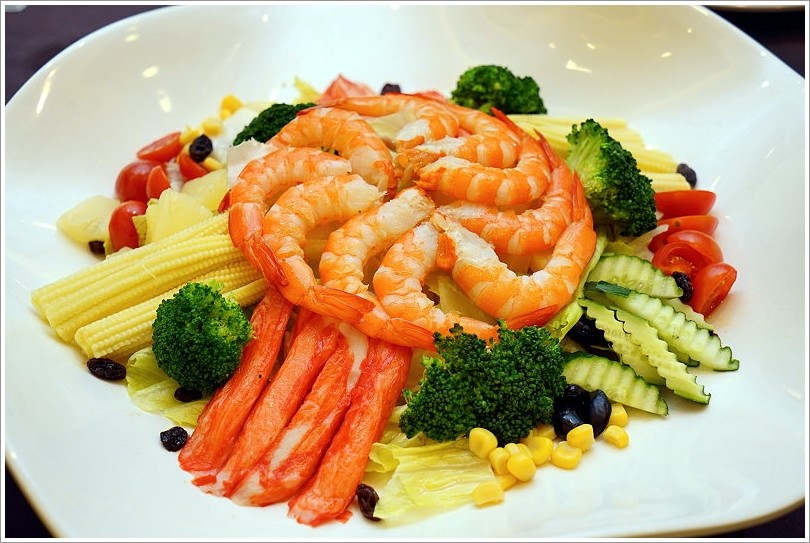 ▼鮮蝦和風綜合蔬,和風蔬果沙拉上頭改成鮮蝦擺盤,貼心的是已經幫忙去殼處理,所以吃起來相當方便又爽口!