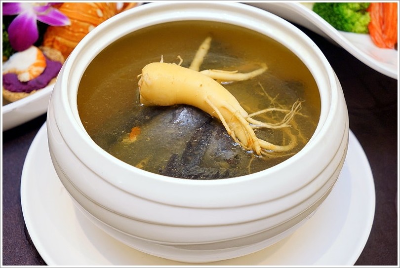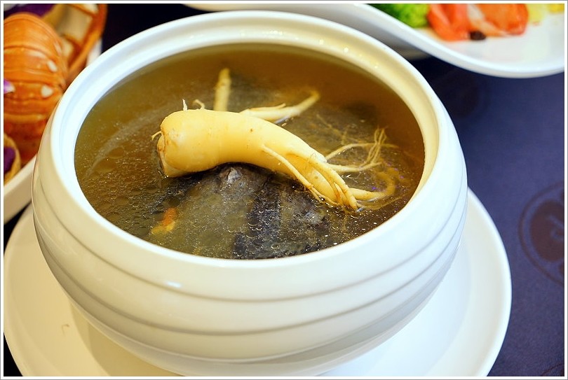 ▼高麗鮮蔘浴鳳凰,上頭超肥厚的高麗蔘也是嚴選的六年蔘,不僅品質好而且香氣也足,搭配烏骨雞一整個感覺就很補!