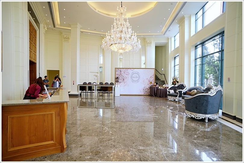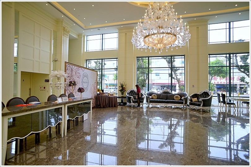▼首先來看維多利亞廳,這一廳是三廳裡頭最大的;一進來就是一個獨立的禮賓接待處,挑高的空間搭配明亮的採光與超華麗水晶燈,感覺時尚又氣派!