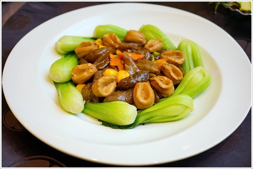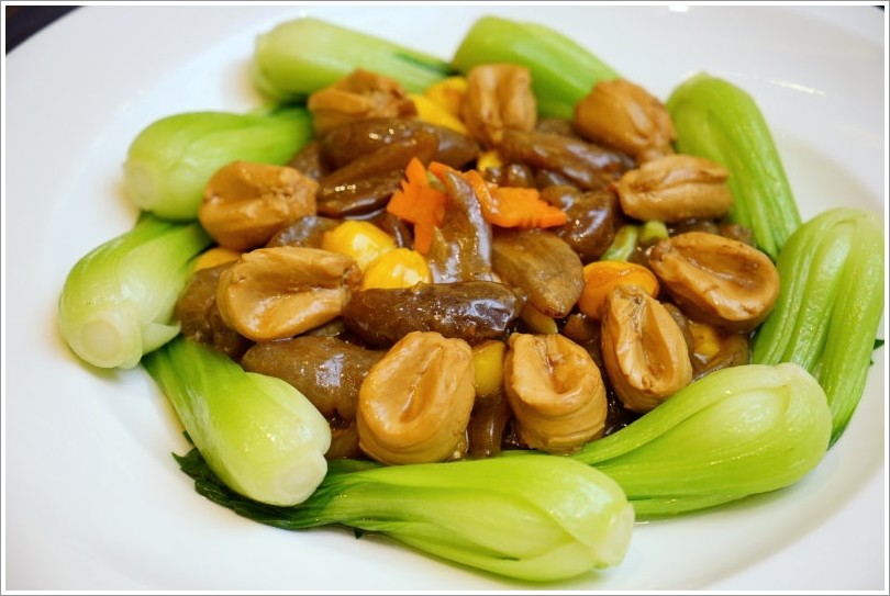 ▼鮑魚鳳果燴烏參,鮑魚跟烏參一次都能滿足,吃起來香Q滑溜又帶有鮮美Q彈口感,搭配白果、蔬菜更是養生又美味!