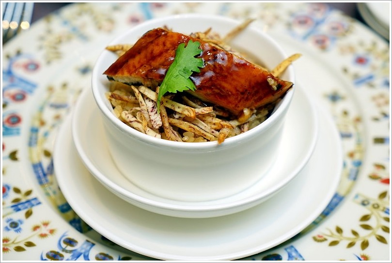 ▼蒲燒鰻珍珠米糕,他們家的米糕也很厲害,吃起來粒粒分明、香氣十足,上頭還鋪有酥炸芋頭絲,再加上鹹甜入味的蒲燒鰻更是美味動人!