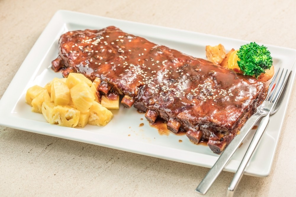 再來這份美式碳烤豬肋排,就屬於調味較重的煙燻感,平心而論搭配啤酒最為恰當。