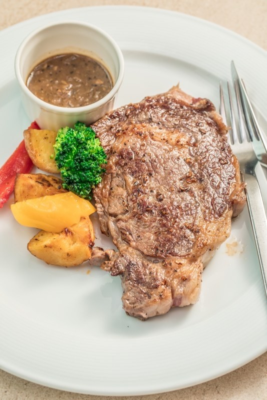 接下來是肉汁勃發的12oz爐烤美國安格斯肋眼牛排,簡單的烹調方式搭配彩椒與蔬菜,卻是一種最單純也最明顯的美味。