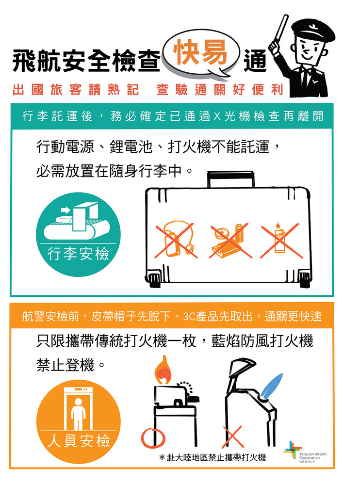 ★打火機不可以放行李箱內,看款式有些可以登機有些不行。(這邊要特別提醒前往大陸轉機或自大陸出境的旅客注意,中國民用航空局規定,禁止旅客隨身攜帶或在手提行李、託運行李中運輸打火機或火柴~