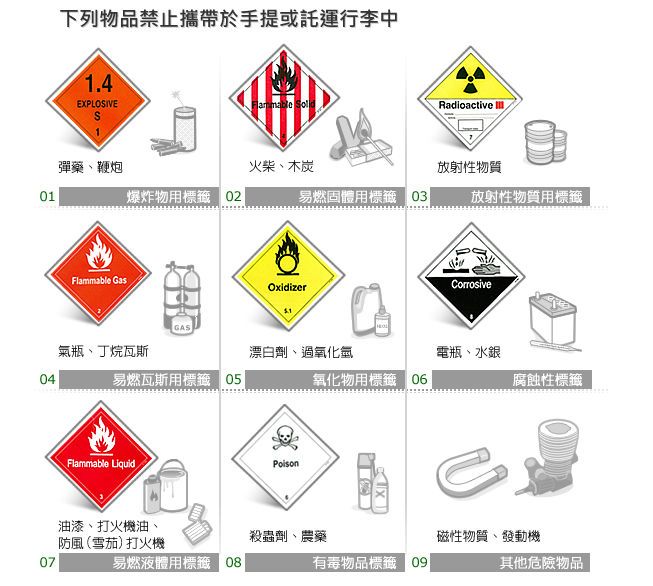 登機注意事項,海關限制物品,各國海關違禁品,飛機違禁品,台灣海關違禁品