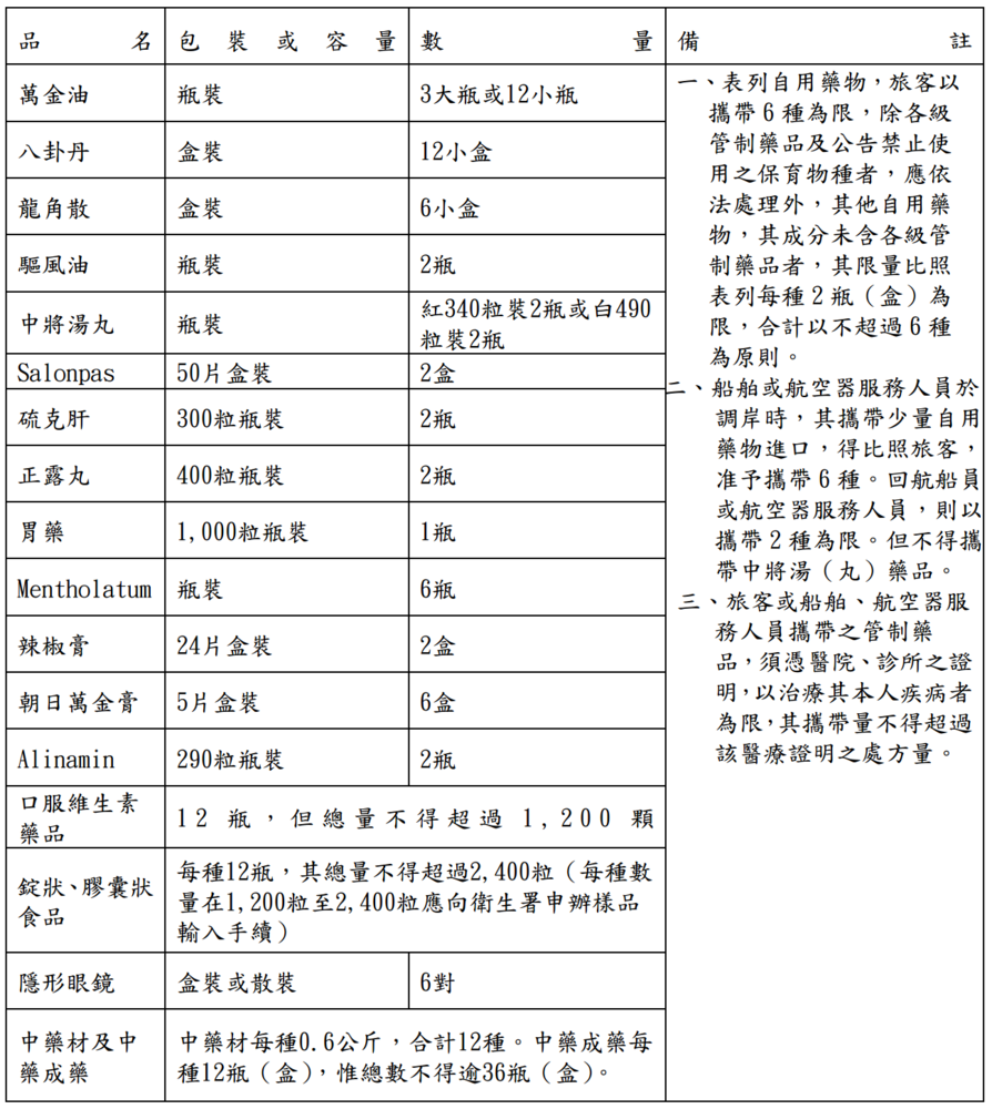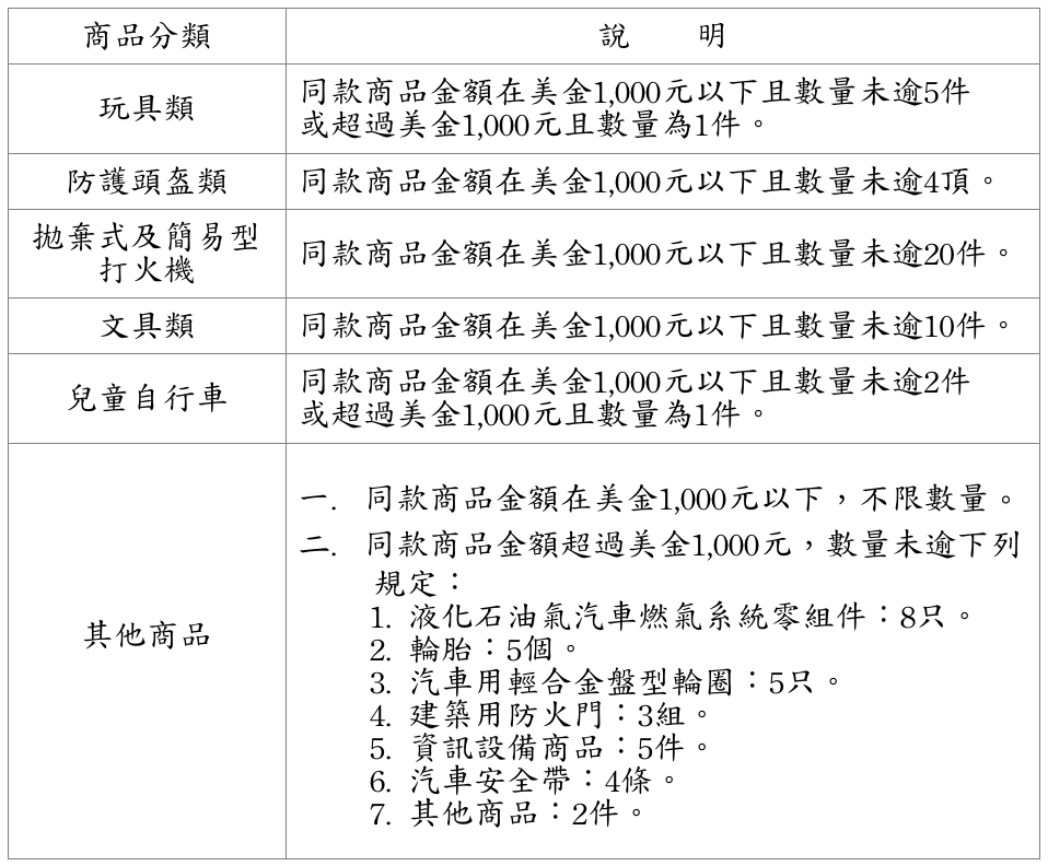 旅客入境免驗商品金額數量 (以下項目不是不能帶,是要確認可攜帶入境的數量唷!)