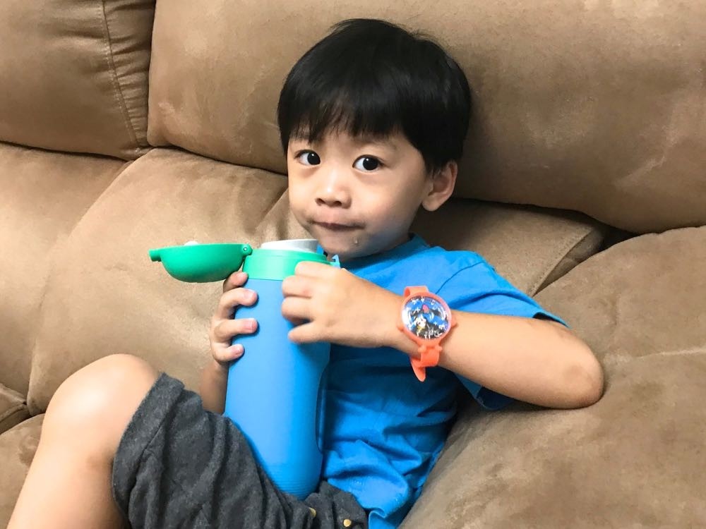 [其實吸嘴式適合剛入門的小小孩,大一點的小朋友可以直接用直飲杯蓋喝會比較快喔]