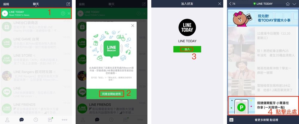 1.開啟手機藍牙與 GPS 定位。 如果還沒開啟過 Bracon 的朋友,可以從 LINE Today 中進行開啟的動作。