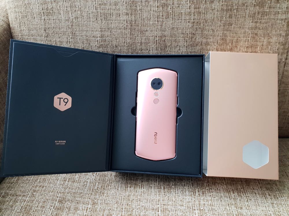 T9 的外觀延續了 T 系列的金屬風格,盒裝上也簡練的用他們的六角形 logo 邊框來顯示 T9 字樣。包裝中也細心地為消費者準備了充電線、保護殼、說明書、保護貼與 type C 轉耳機孔。