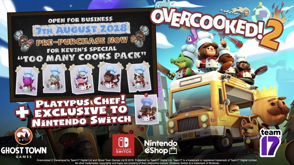 任天堂的 E3 怎麼這麼歡樂!這次任天堂在 E3 中為相當受到歡迎的 Nintendo Switch 推出許多新作品消息,其中可以在廚房盡情搗亂(!?)的『煮過頭』也確認將會在今年 8 月帶來『煮過頭 2(Overcooked 2)』新作!