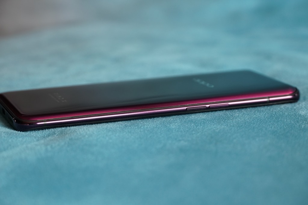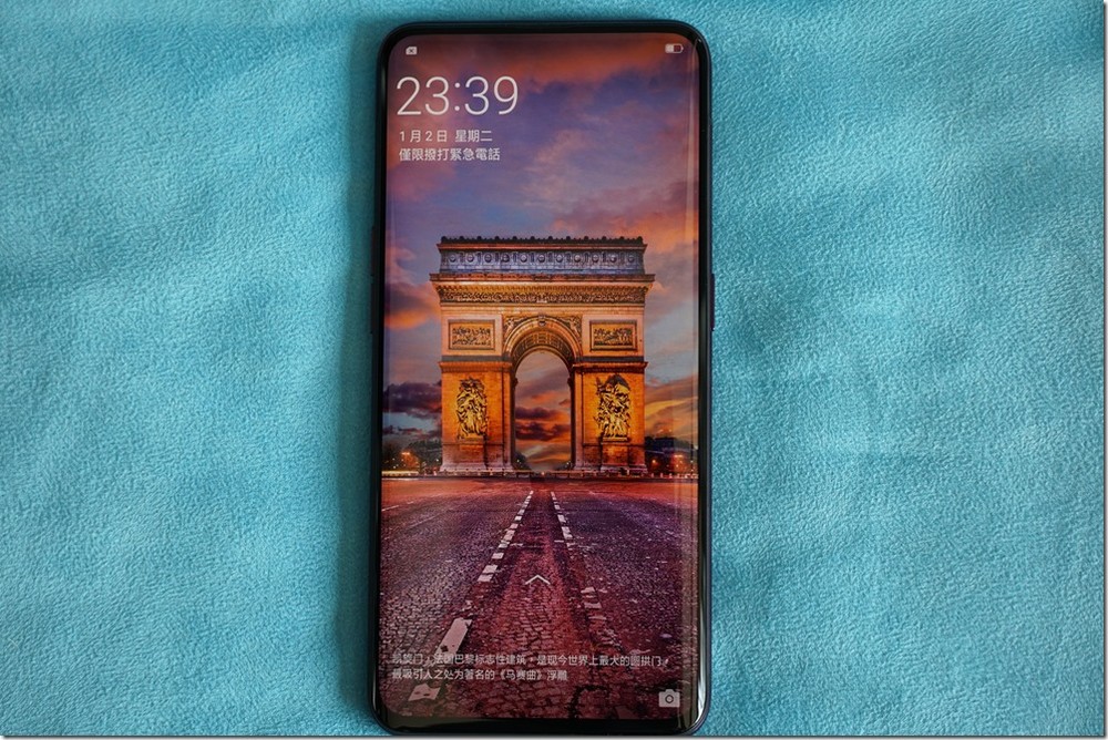 FIND X 目前為業界最大螢幕占比的智慧型手機,使用 6.42 吋 FHD+(2340×1080) AMOLED 雙曲面顯示器,在正面完全沒有任何的開孔,三面極窄邊框與不算寬的下巴,非常美麗,外觀規格為 156.7 x 74.3 x 9.6 mm。