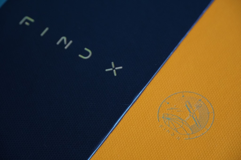 FIND X 外何以深邃的藍色搭上燙金的 FIND X 字樣設計,以抽屜式的方式可拉開內盒,拉開後即可見到如天象儀般的圖像,這也是 FIND X 探索態度的象徵,這圖像在開機後也會看到。