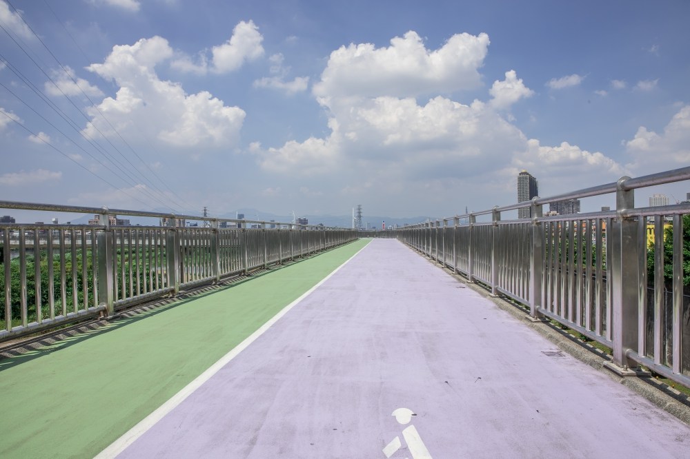 再走個兩三分鐘,就正式到達新月橋的自行車引道,這座橋沒有任何一個階梯,只有舒適的緩坡讓大家上下,所以不管是長輩或小朋友都不會有太大的負擔。