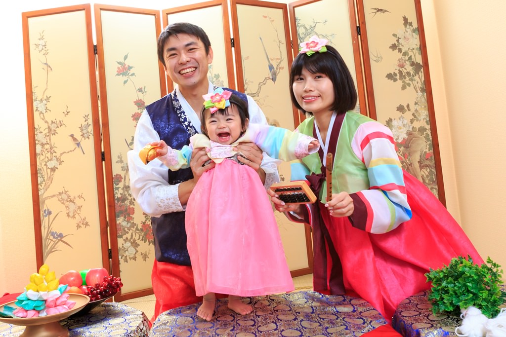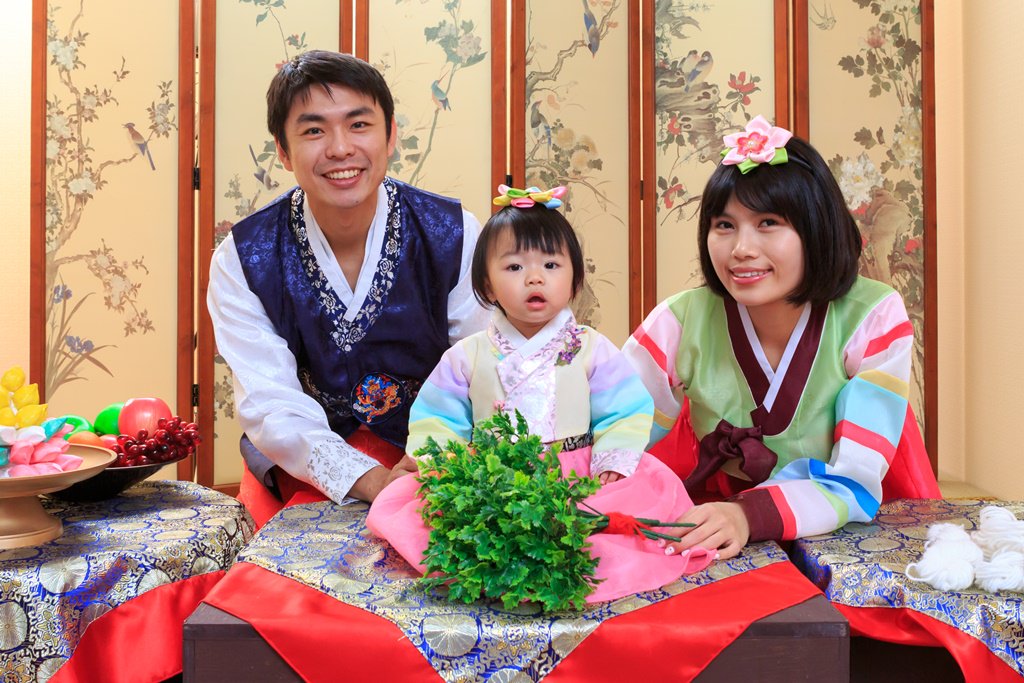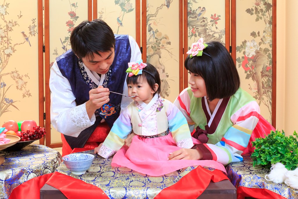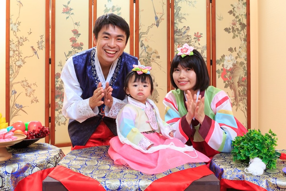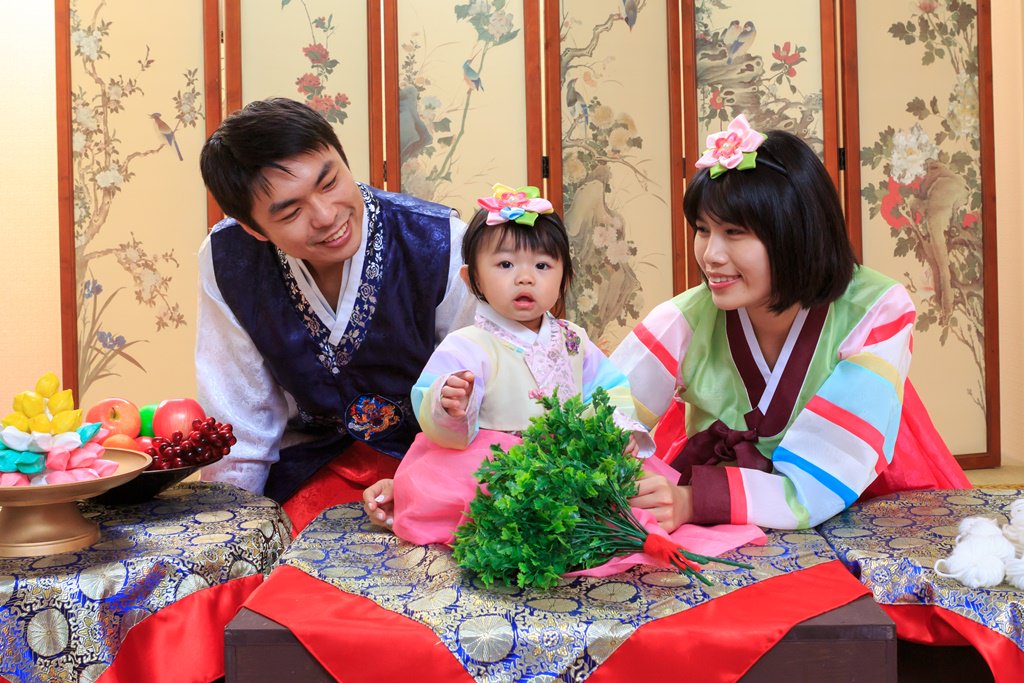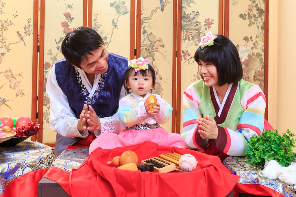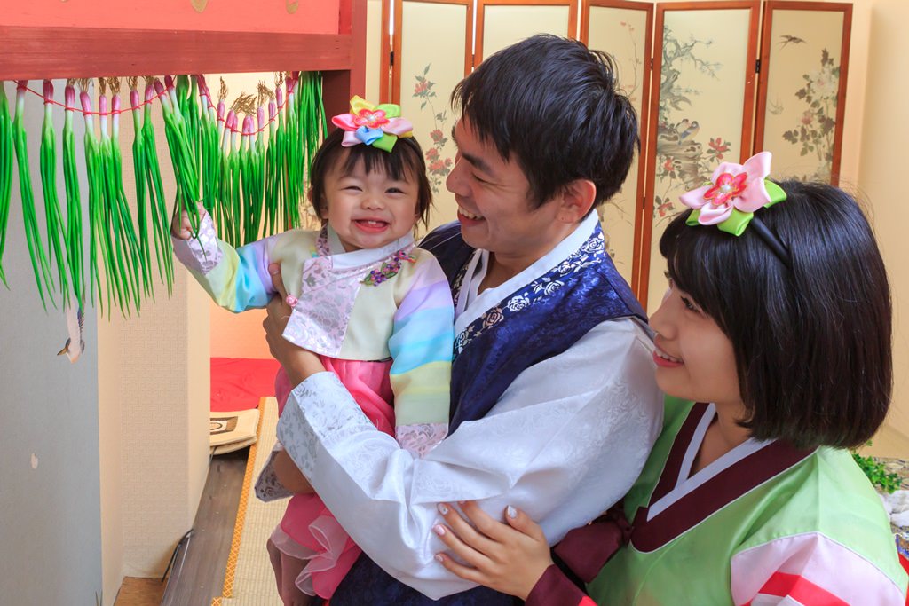 韓國傳統儀式,長線即麵線,在中國或韓國麵線的意義都有延年益壽的含意,掛長線象徵期許孩子長命百歲。