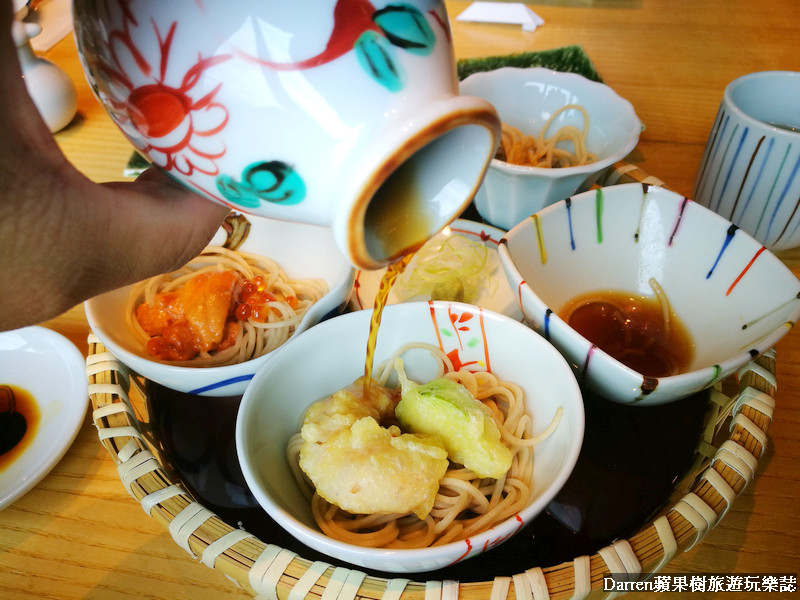 海膽鮭魚卵蕎麥麵、鴨肉南蠻蕎麥、松葉蟹蕎麥麵、天婦羅蕎麥、山藥泥吻仔魚蕎麥,一次吃到5種口味蕎麥麵