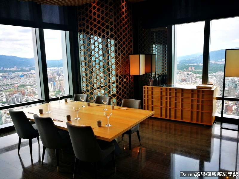 開闊挑高的吧台區可以欣賞日本師傅在料理的過程,在後面還有高空美景可以欣賞,就算一個人也不會無聊