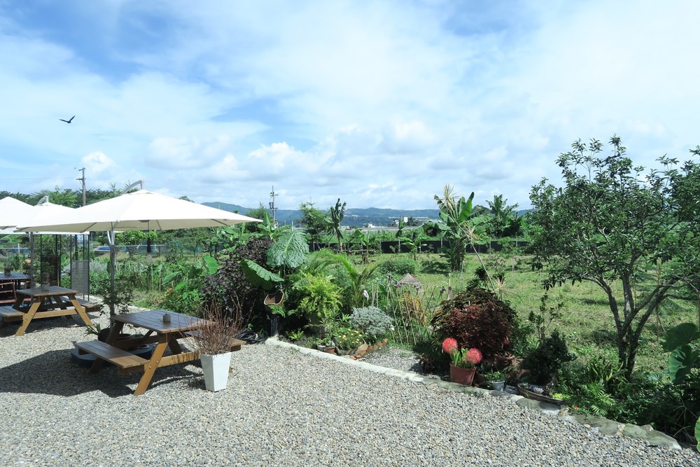 外面有一個小庭院,可以在這裏吹風聊天喝茶~享受田園風光!不得不提的是,民宿環繞著一條細細的「護城河」,裡面有小魚悠閒的游來游去,民宿老闆娘說,養魚除了美觀以外,重要的是可以防止蟲或螞蟻入侵房內,原本無奇的水溝,變成了可愛的魚池,還可以保衛家園!XD