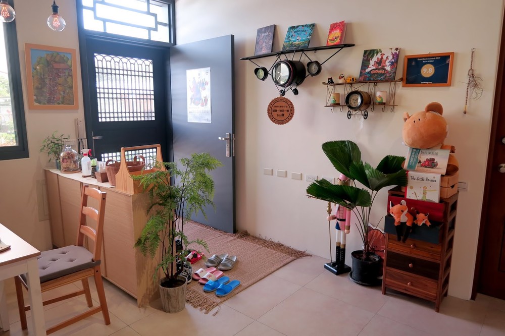 接待處(餐廳)的玄關擺放著各種可愛小物、花草與繪本,十分溫馨。小莓真的好羨慕又敬佩設計師們的美感啊!隨便擺隨便美!