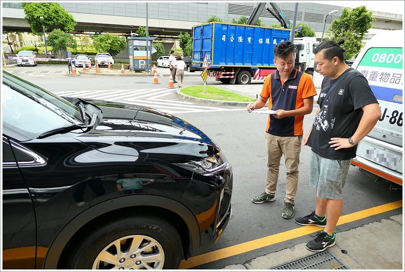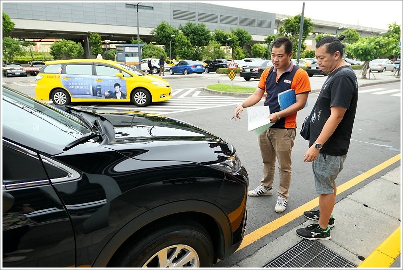 ▼經過一整天的玩耍,終於到了還車的時間!大口將車子開回原本的地方,再通知服務人員出來檢查領車!服務人員通常會從車頭到車尾簡單巡視一圈,通常車況沒什麼大問題就ok了!