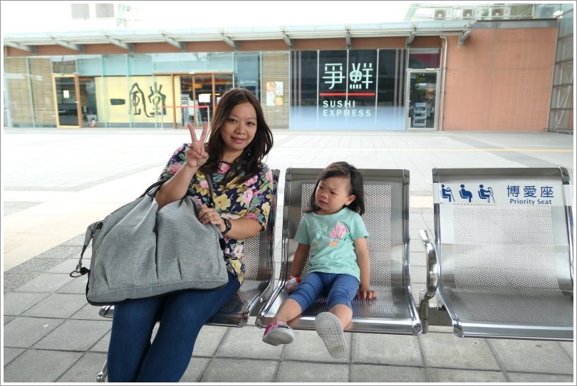 ▼等待的地方還有椅子可以稍坐一下,小口愛皺眉是因為風太大吹亂了她的秀髮XDD