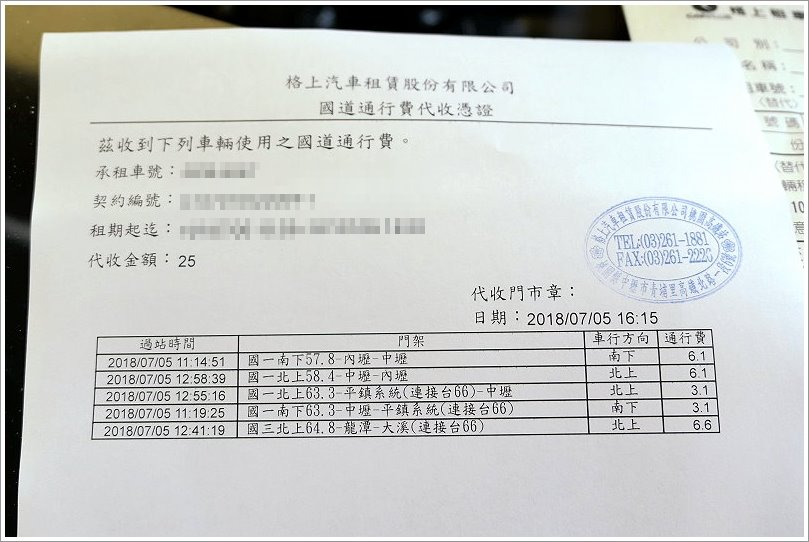 ▼付完過路費後,服務人員也會提供一張代收憑證給你,裡頭就會列出詳細的資訊!