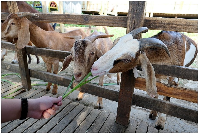 ▼下午有時間的話還可以到中壢羊世界牧場去走走,這裡的門票只要60元,其中30元還可以到門口的販賣部折抵商品使用,其實還滿便宜的!不過牧草就不能另外折抵了,但還是很便宜啦~主要是這裡可以親近不少小動物,包括餵羊咩咩都沒問題,小口愛的牧草一直被羊咩咩拉著走但她還是餵得很高興XD