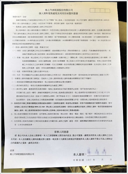 ▼另外還有一張個人資料蒐集處理及利用告知暨同意書,大家看過之後沒問題的話就可以簽名囉!