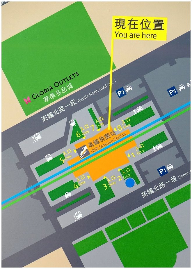 ▼大口在這裡提供平面圖,讓大家更能一目了然!來到桃園高鐵站往華泰名品城的方向走,介於7、8號出口間就會看到囉!