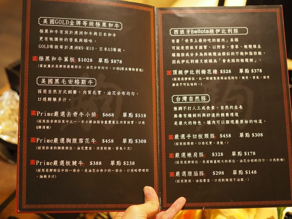 不僅牛肉等級都是高級嚴選,其他豬肉也有台灣自然豚、西班牙伊比利豚